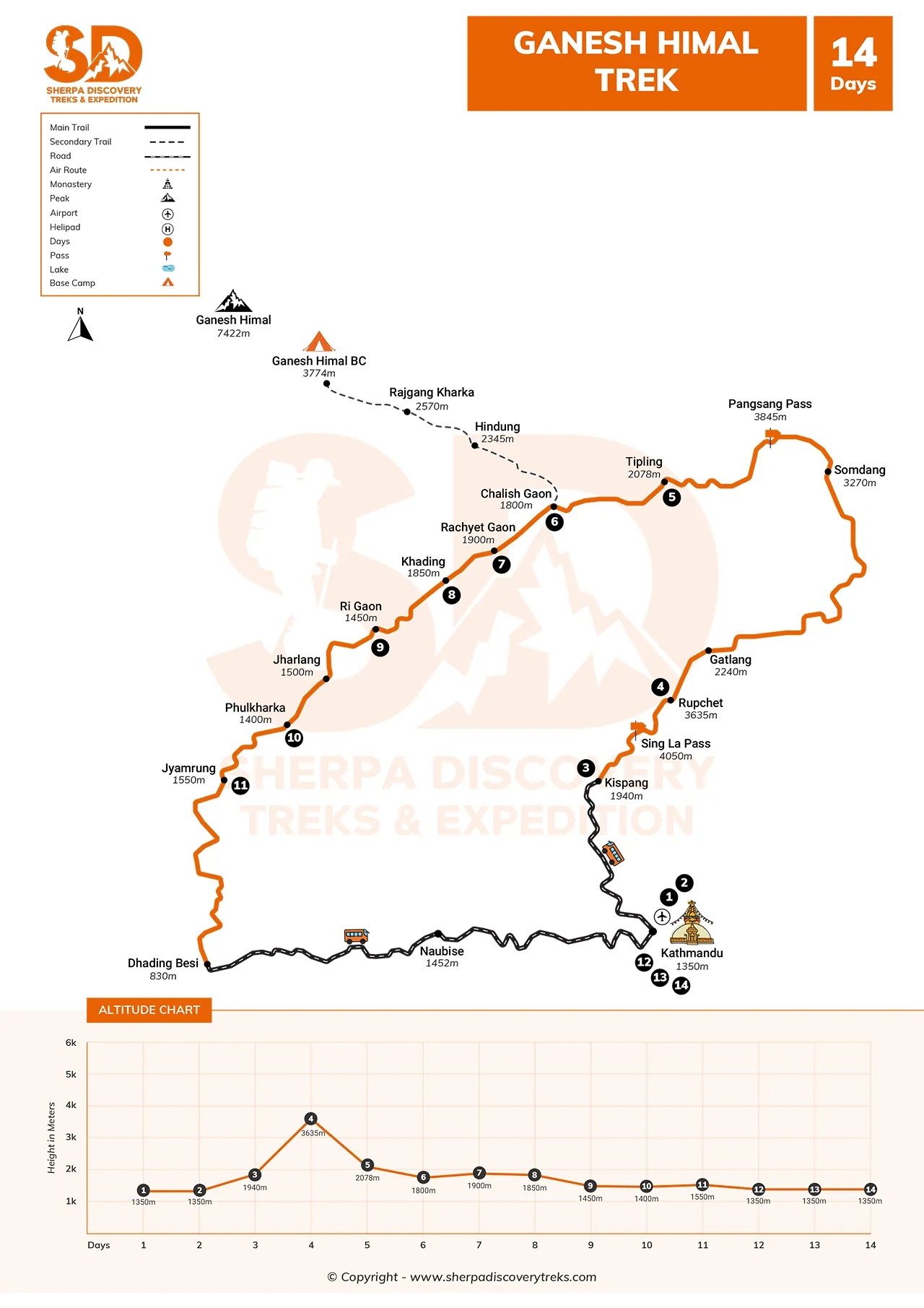 To make sure, each of our hiker gets the proper time to adjust to the high air of Ganesh peak, we have carefully planned our Ganesh Himal trek itinerary that will give your body plenty of time to acclimatize to the increasing elevations.