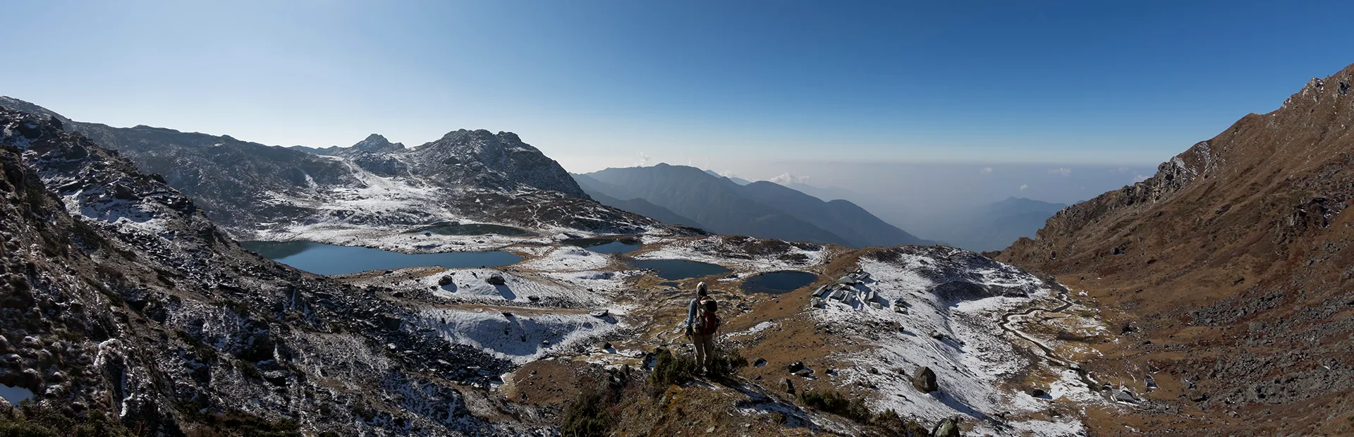 Here, we will find several hotels, one of which will be our refuge for the night. You have the option to explore the lakes one by one or go on the upward hike towards the Panch Pokhari View Point (4300 m) 30 minutes away.