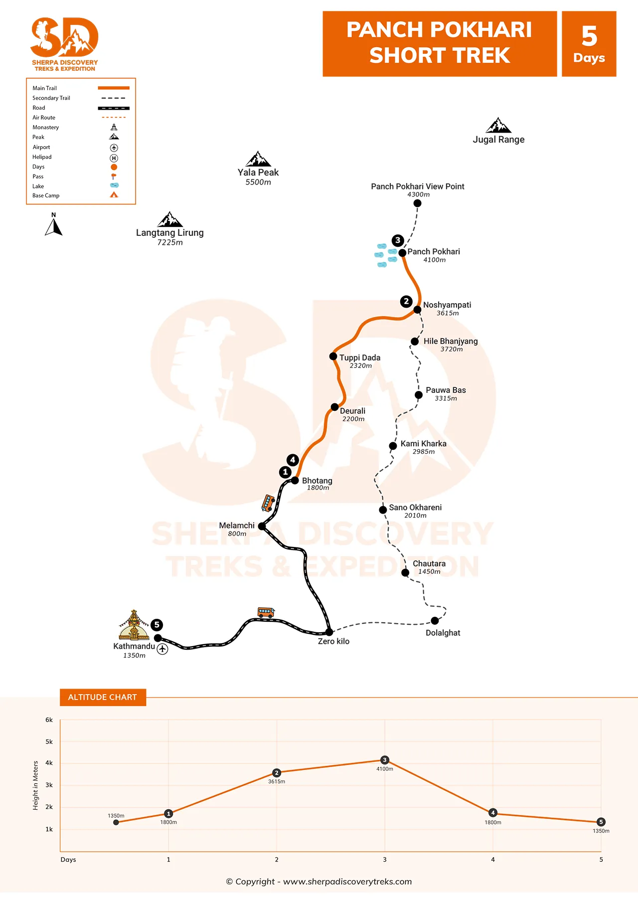 For our 5 days Panch Pokhari trek, we suggest you get the policy that includes the coverage for extreme hiking activities to the altitude of 4500 m.